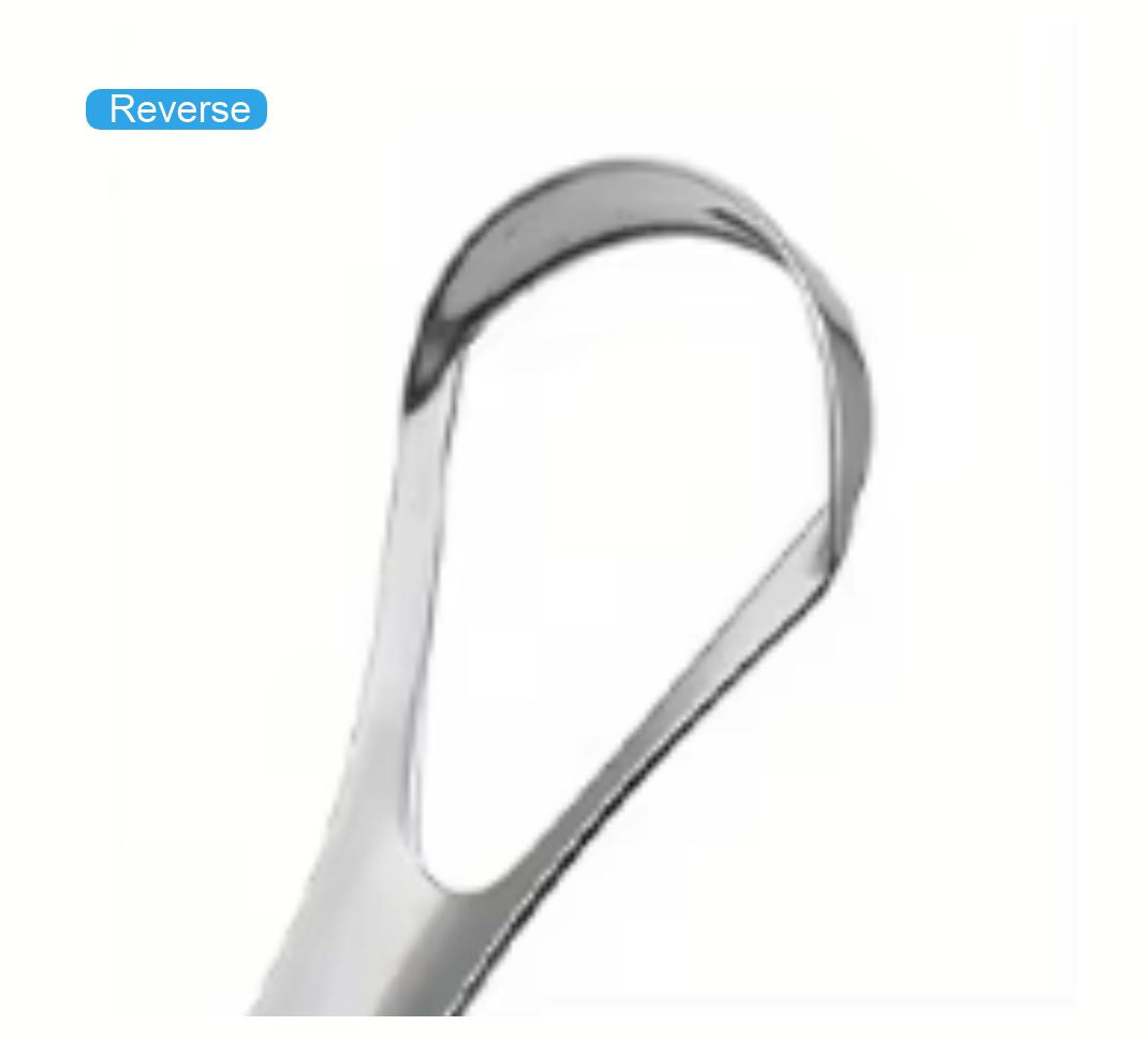 Rounded Spoon shape scraping head, gentile scraping tongue.